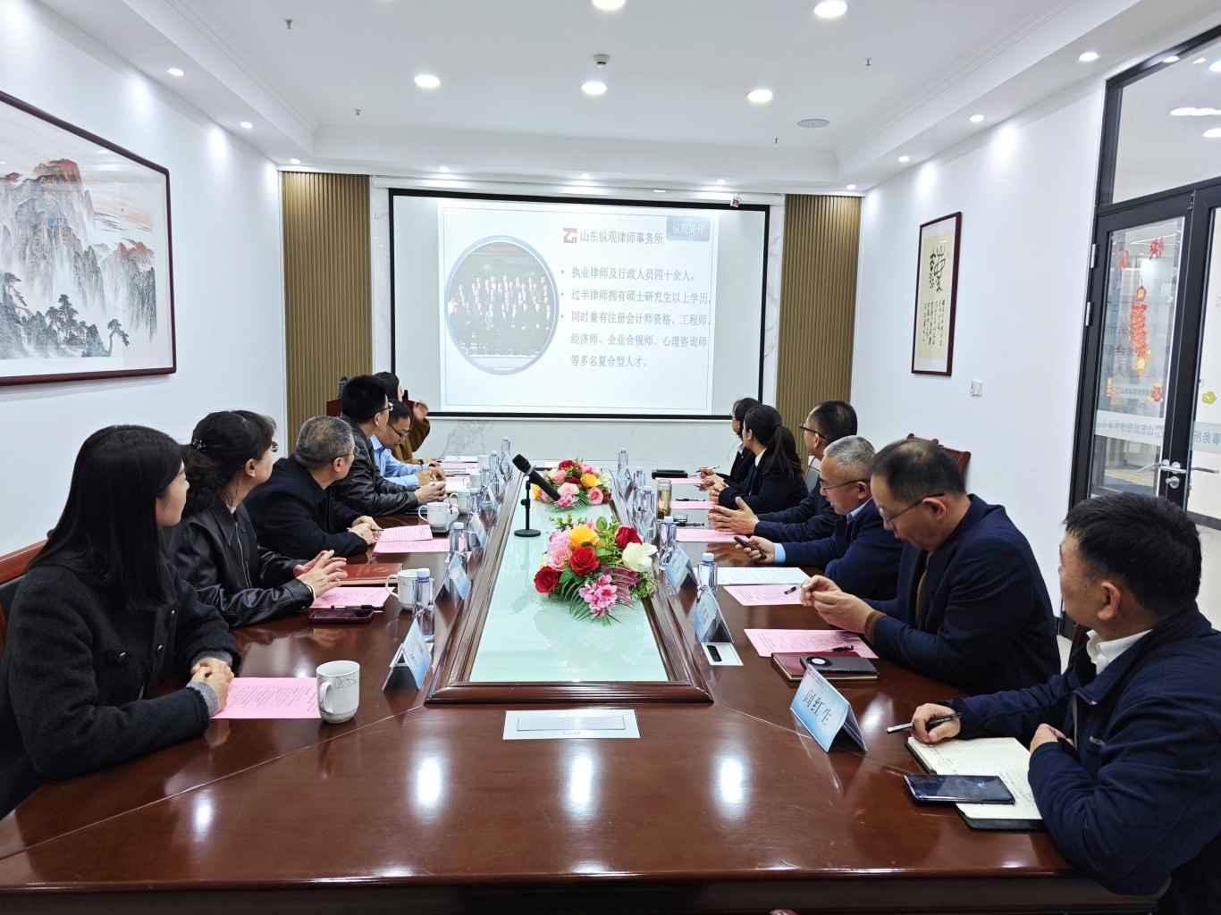 活动伊始,山东纵观律师事务所主任张生、党支部书记曹雅琪陪同学院领导参观律所。随后,与会人员落座于会议室共同观看了山东农业大学宣传片《登高》,深入了解了学校的发展历程、教学成果与未来规划。紧接着,山东纵观律师事务所简介片的播放,展示了律所的专业团队、所获荣誉、业务范围以及发展状况。