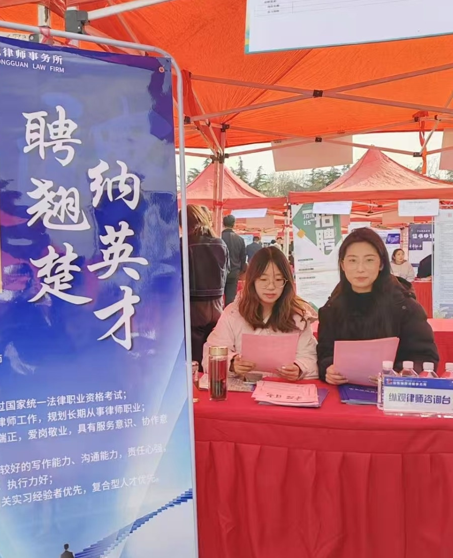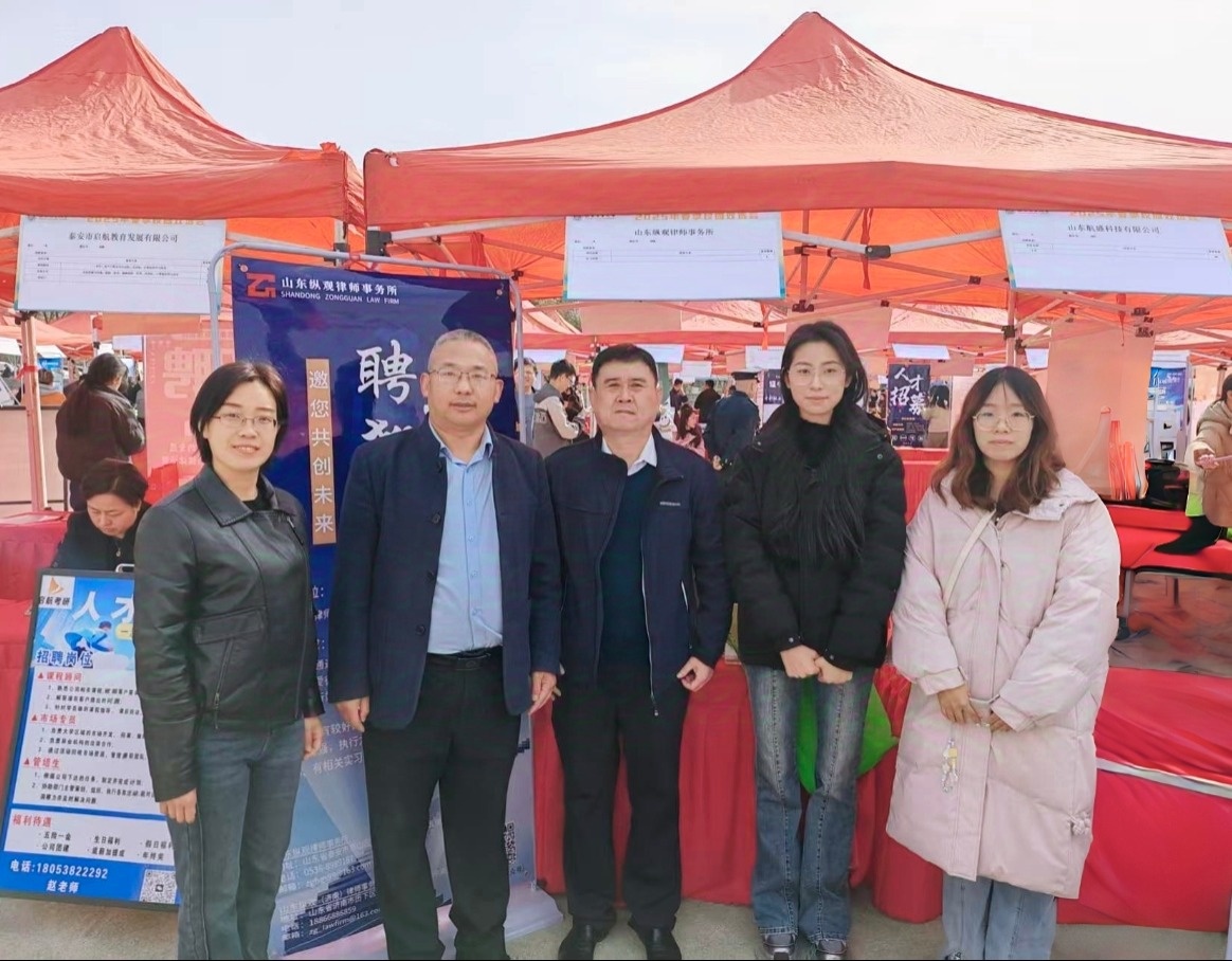 阳春三月,万物焕发生机,山东农业大学 “2025 年春季校园双选活动” 于 3 月 28 日盛大启幕,现场人潮涌动,气氛热烈非凡。作为山东农业大学大学生就业实习基地,山东纵观律师事务所积极响应,由张生主任带队,刑事业务部主任杨超、律师闾红生、见习生阚梦娇、连洁共同参与此次活动,旨在吸纳优秀人才,深化与高校的交流合作。
