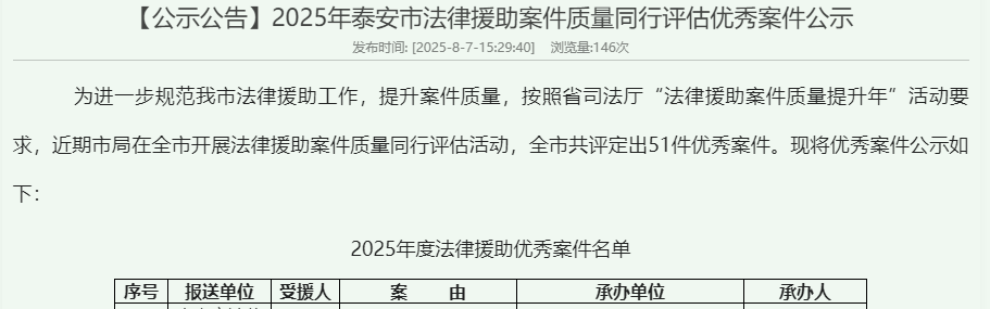 为进一步规范我市法律援助工作,提升案件质量,按照省司法厅“法律援助案件质量提升年”活动要求,近期市局在全市开展法律援助案件质量同行评估活动,全市共评定出51件优秀案件,我所仇桂萍律师承办的“强*波涉嫌掩饰隐瞒犯罪所得罪案”以及杨超律师承办的“徐*涛涉嫌盗窃罪案” 均获评“2025年度法律援助优秀案件”