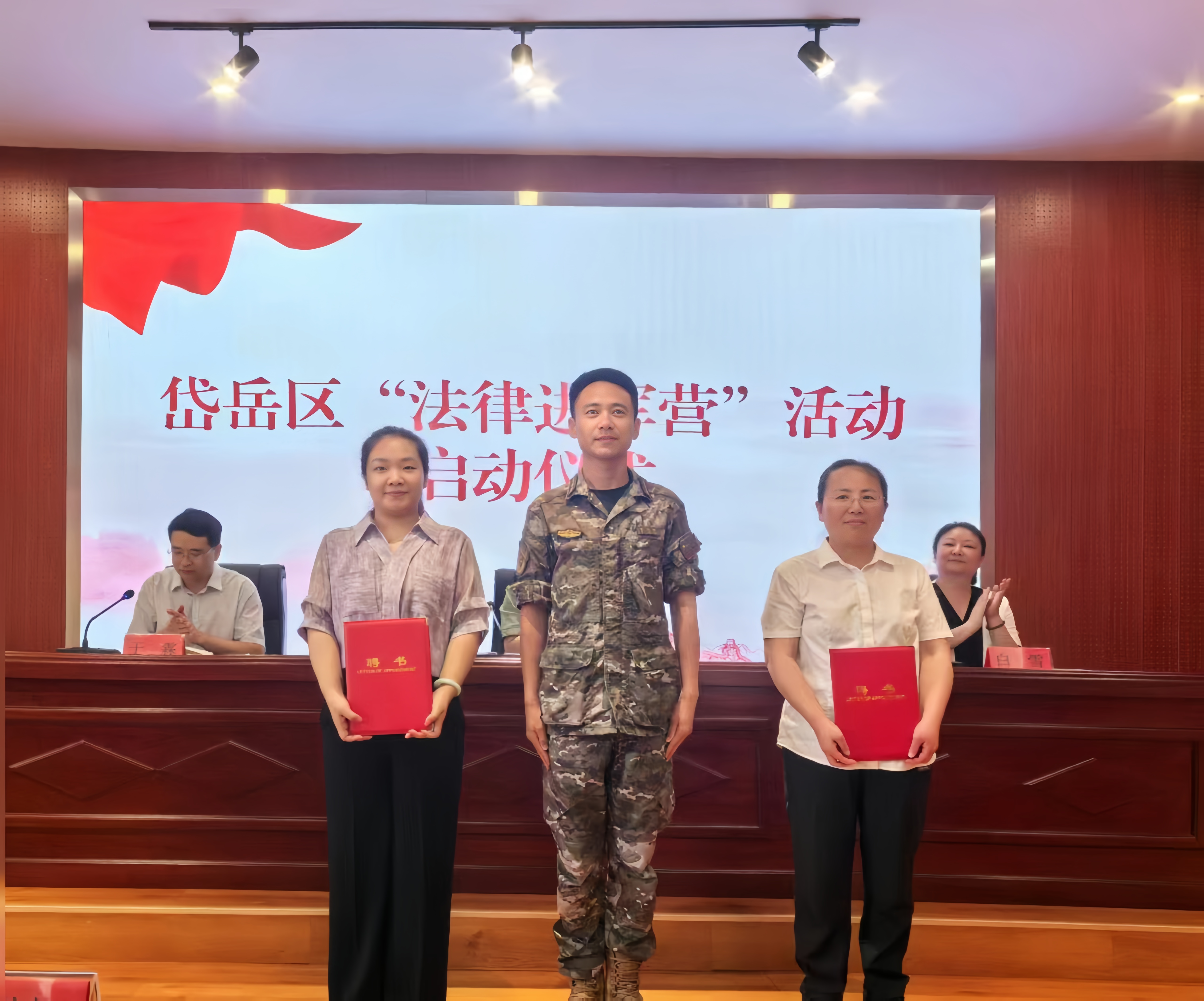 2025年6月27日,岱岳区“法律进军营”活动启动仪式上,山东纵观律师事务所曹雅琪、仇桂萍两位律师被聘为武警泰安支队“法务指导员”。